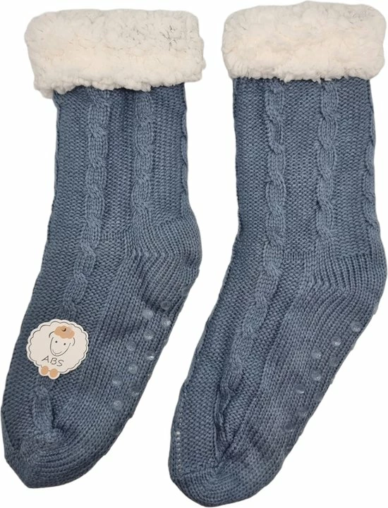 Antonio Dames Huissokken – Gebreid – Levendel Blauw – Antislip ABS – One Size (35-42) – Hüttensocken – Warme Sokken – Warme Huissloffen