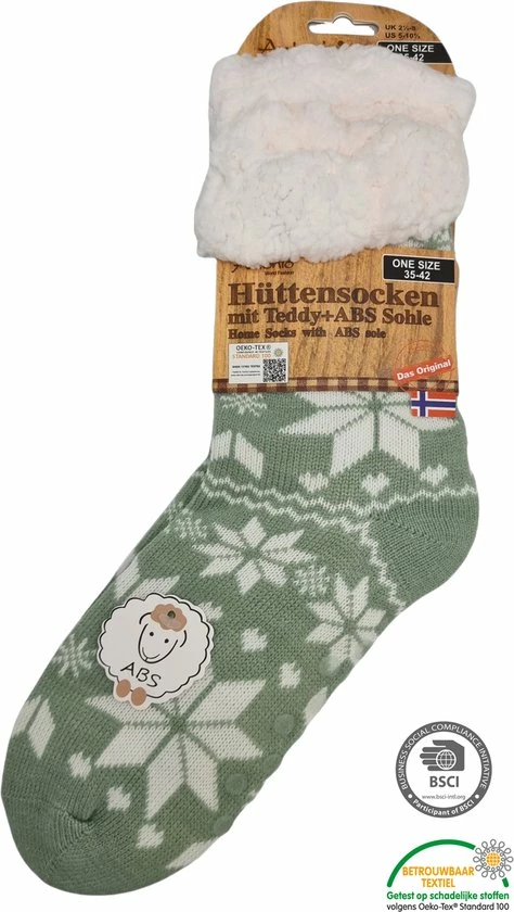 Deze huissokken zijn van binnen gevoerd met super soft teddy materiaal waardoor je voeten lekker warm blijven en bevatten een ABS zool (Anti slip) waardoor u veel grip heeft op de grond en dus niet zo maar uit kan glijden. De sokken zijn 100 % gemaakt van polyacryl en kunnen gewassen worden op 30 graden.