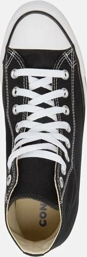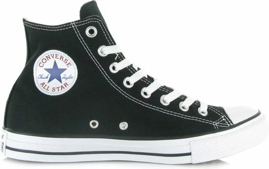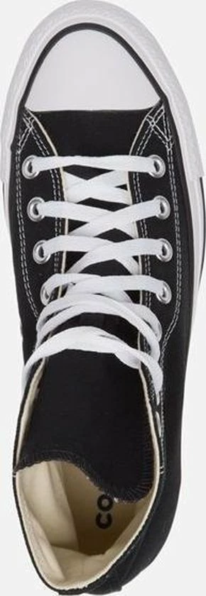 Deze iconische Converse Chuck Taylor All star OX High Top sneakers zijn ideaal voor het voorjaar en de zomer! De schoenen zijn gemaakt van luchtig canvas en hebben een voering en binnenzool van textiel. De zwarte sneakers zijn uitgevoerd in het hoge model dat boven de enkel valt. De sneakers zijn voorzien van merkopdrukken, stiksels en een zwarte lijn over de rubberen zool die een dikte heeft van 2 centimeter. Door middel van veters zijn de sneakers te sluiten. Dit klassieke model kan je met iedere look en stijl combineren. Dit maakt het een veelzijdige sneaker die ideaal is voor alledaags gebruik. De zwarte Converse Chuck Taylor All Star OX High Top sneakers hebben een vast voetbed.