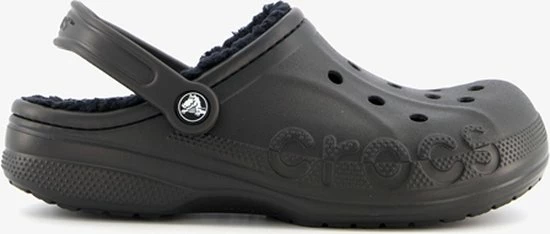 Zwarte gevoerde Crocs™ Baya klompen voor dames. Deze gevoerde Crocs zijn ideaal voor de koude wintermaanden! Aan de zijkanten van de Crocs staan grote merklogo’s afgebeeld. Voorzien van ventilatiegaten op de bovenzijde van de klompen. Gemaakt van imitatieleer, een binnenwerk van textiel en een stevige zool.