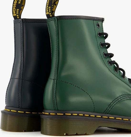 Deze klassieke, donkergroene veterboots van Dr. Martens matchen bij iedere outfit. Combineer de boots met een bloemetjesjurk, onder een rok of match ze bij een stoere jeans. De 1460 Smooth leren veterboots hebben een buitenwerk van (mat) leer, een binnenwerk van leer en een stevige profielzool. De binnenzool is gemaakt van leer, deze is niet uitneembaar. De veterboots zijn voorzien van de kenmerkende gele stiksels bij de zool en het gele aantreklusje op de schacht. De zool is gemaakt van PVC. Maak de Dr. Martens eenvoudig schoon met een vochtige doek en onderhoud ze met de Collonil Vario multifunctionele schoenspray. OP=OP! Let op! Deze smooth leren schoenen moet je goed inlopen. Hoe vaker jij ze draagt hoe soepeler het leer wordt. Van deze schoenen heb je dus jaren plezier! Je kan deze schoenen polijsten voor een glanzende look of opschuren voor een gedragen look.