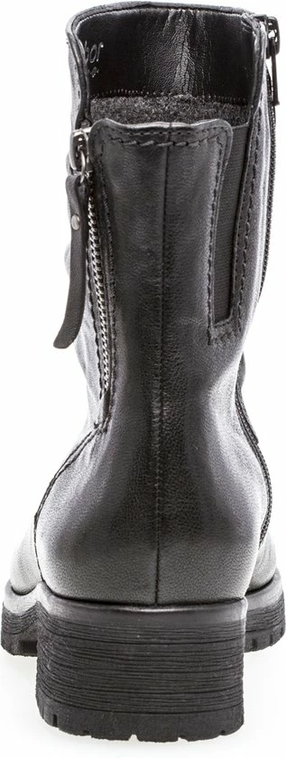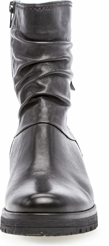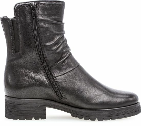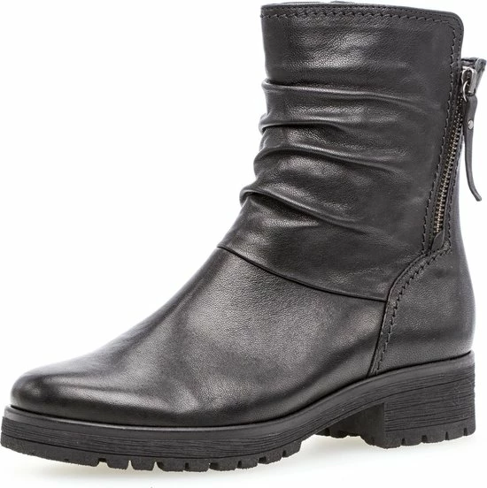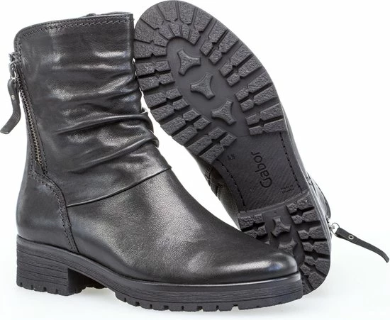 Gabor dames boot. Een zwarte boot is onmisbaar in je schoenen garderobe, als ze ook nog je voeten warm houden is dat super fijn! De dames boot van Gabor is uitgevoerd in leer en heeft een sier rits en in schacht zijn plooien gemaakt voor een nonchalante look. De binnenvoering en het voetbed is van warm textiel dat de voeten langer warm houdt. Trek ze makkelijk aan- en uit met de bruikbare ritssluiting. De rubberen zool is grof en stoer en biedt een uitstekende grip.