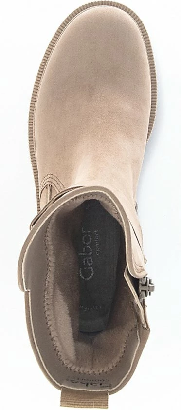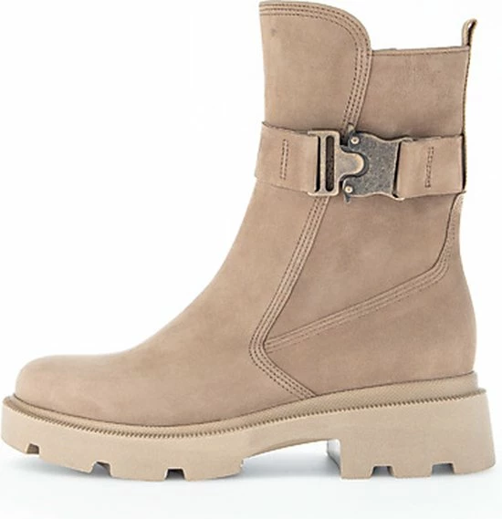 Beige Gabor enkellaarzen in mooi nubuck, voor een paar halfhoge Chelsea boots. De ritssluiting aan de binnenzijde maakt het makkelijk om ze aan en weer uit te trekken. Het bandje om de enkel en het gesp-detail maken de Gabor enkellaarsjes een mooie keuze, die bovendien extra wijdte biedt bij de tenen, bal en wreef.