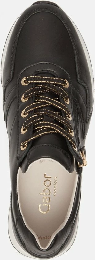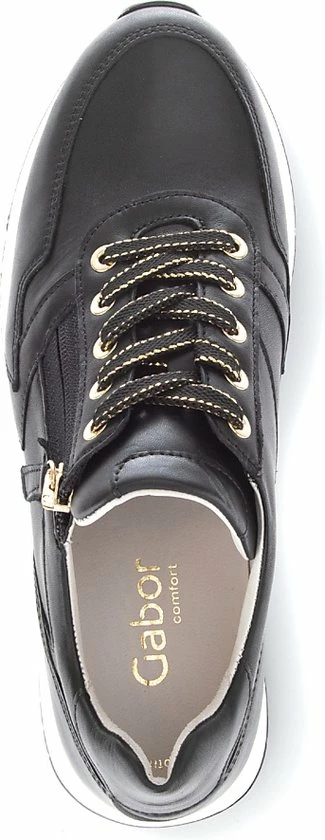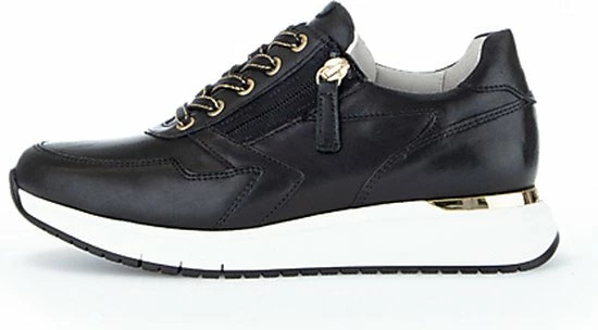 Gabor weet met deze sneakers de perfecte combinatie te bieden van trendy en comfortabel. Leuke details aan de sneakers zijn de gouden details in de zool, rits en veter. De schoenen zijn gemaakt van leer, net als de voering en comfortabele binnenzool. Naast de vetersluiting zijn de schoenen ook voorzien van een rits. Dit maakt het instappen snel en makkelijk. De sneakers zijn uitgevoerd in een H-leest, waardoor ze geschikt zijn voor bredere voeten. De schoenen hebben een stevige zool die veel grip biedt. Het voetbed van de Gabor sneakers is uitneembaar!