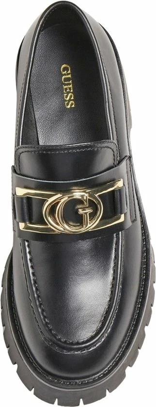 Guess Ilary instapschoen. Guess steekt de klassieke loafer in een modern jasje met dit model. Vervaardigd uit stevig leer met op de band het G-logo van Guess. De leren voering houdt door het ademende effect de voeten op aangename temperatuur. De grove profielzool is gemaakt van thermoplastisch rubber en biedt grip en stabiliteit.