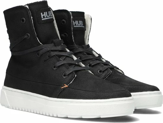 Deze hoge sneaker Chess 3.0 komt uit de schoenencollectie van het merk HUB en past bij vele outfits! De sneaker is gemaakt van zwart, gestructureerd nubuckleer en heeft fraaie stiksels en leuke details zoals het merkembleem op de tong, het merkeliëf op de hiel en de veterlus op de hiel. De binnenkant is gemaakt van teddy stof en voelt heerlijk zacht aan en zorgt ervoor dat jouw voeten warm blijven. Het voetbed is uitneembaar en gemaakt van gel, hierdoor voelt het alsof je op kussentjes loopt! De zool is gemaakt van rubber en heeft een gripvast profiel.
