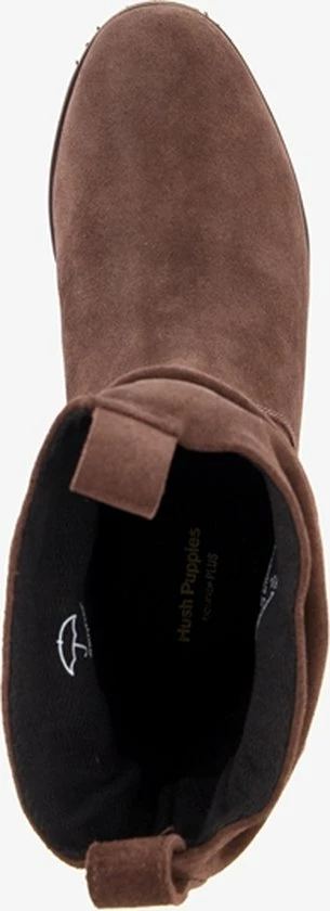 Bruine enkellaarzen voor dames van Hush Puppies. Gemaakt van suede, een binnenwerk van textiel en een stevige zool van rubber. De enkellaarzen hebben een elastische instap met aantreklusjes. Het comfortabele voetbed is gemaakt van textiel. Deze is niet uitneembaar.