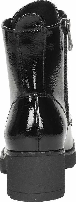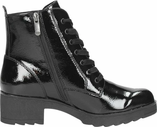 Deze veterlaarsjes komen uit de nieuwe collectie van Marco Tozzi. Het bovenwerk van deze enkellaarsjes is van synthetisch lak. Aan de binnenzijde van de damesschoen is een rits geplaatst om het in- en uitstappen te versoepelen. De binnenvoering is van aangenaam textiel. Deze damesschoenen van Marco Tozzi 25262 beschikken over een vaste binnenzool. De blokhak heeft een hoogte van circa 5 centimeter.