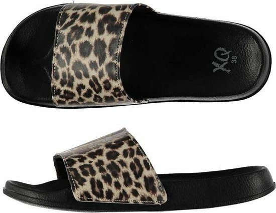 Badslippers/huisslippers met panter print voor dames. Deze dames slippers hebben een gevormd voetbed wat zorgt voor meer comfort. Materiaal: Kunststof.
