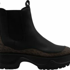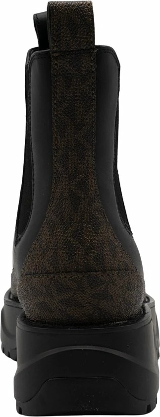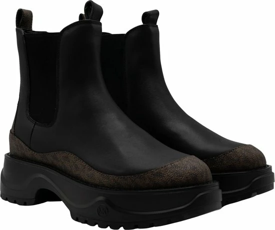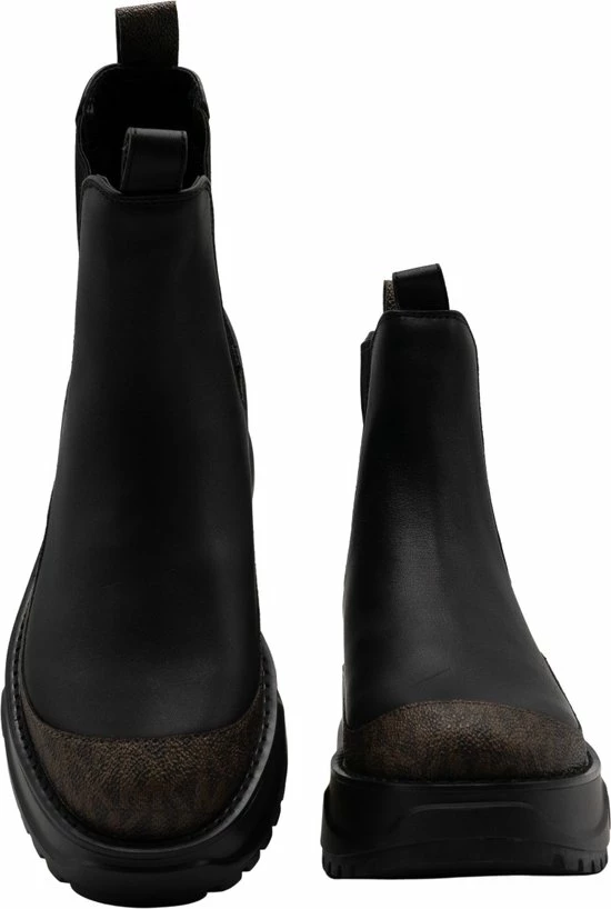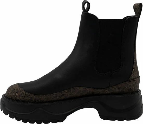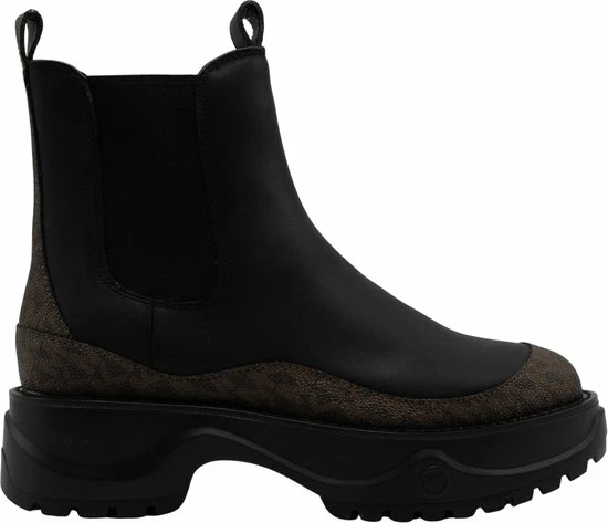 Mooie Chelsea boots in de kleur zwart uit de nieuwe collectie van Michael Kors. De chelsea boot is voorzien van een all-over logo print op de neus de boots zijn makkelijk te combineren met iedere outfit.