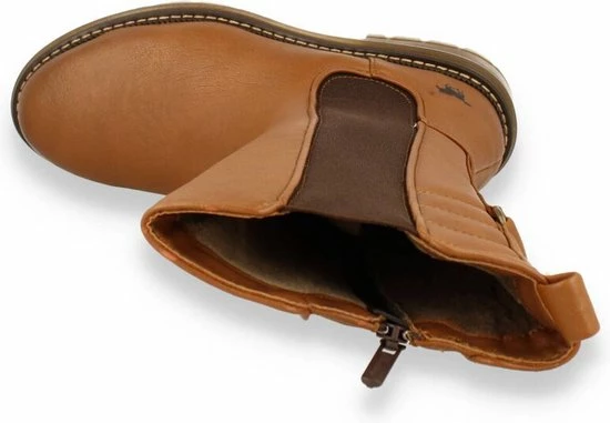 Stoere Mustang chelsea boot in een warme kastanje kleur. Het bovenwerk is gemaakt van synthetisch materiaal en de schoen heeft een warme voering van zacht textiel. De loopzool is gemaakt van kunststof en de Mustang chelsea boot is voorzien van een ritssluiting.