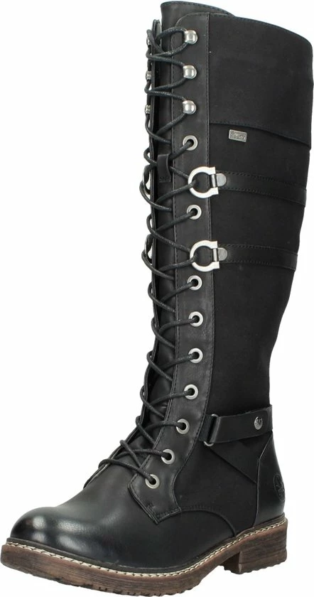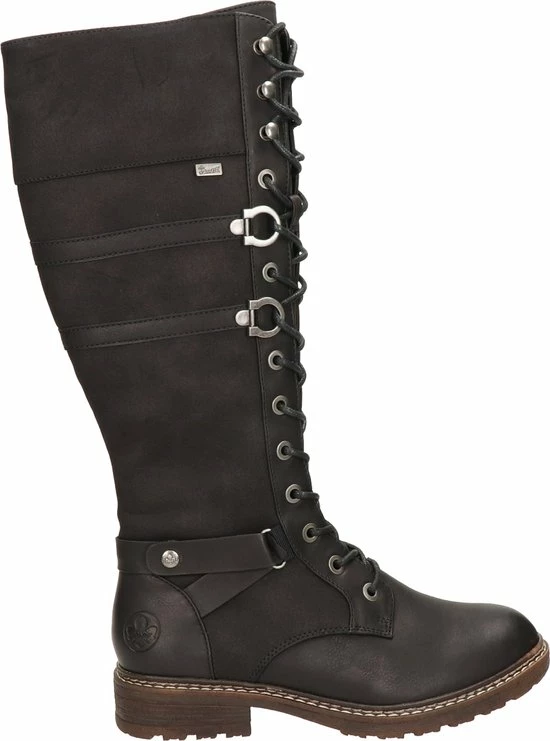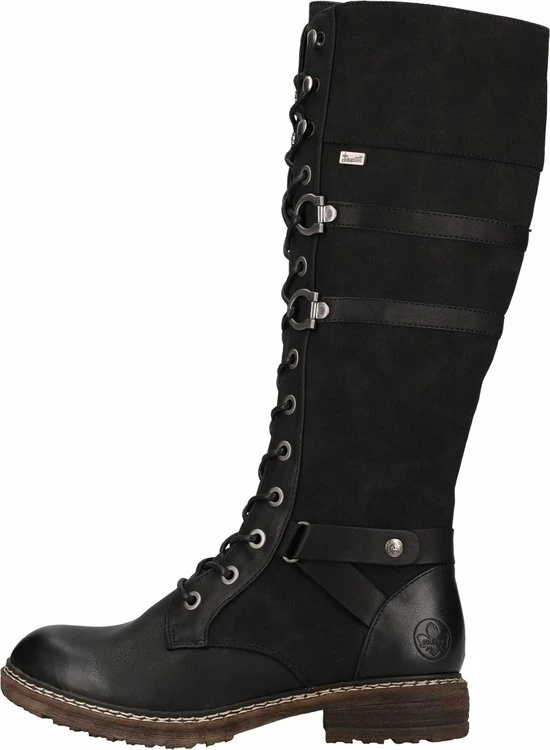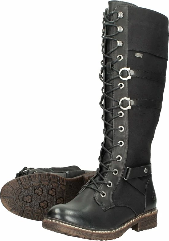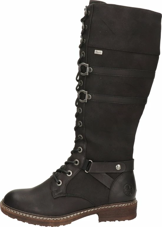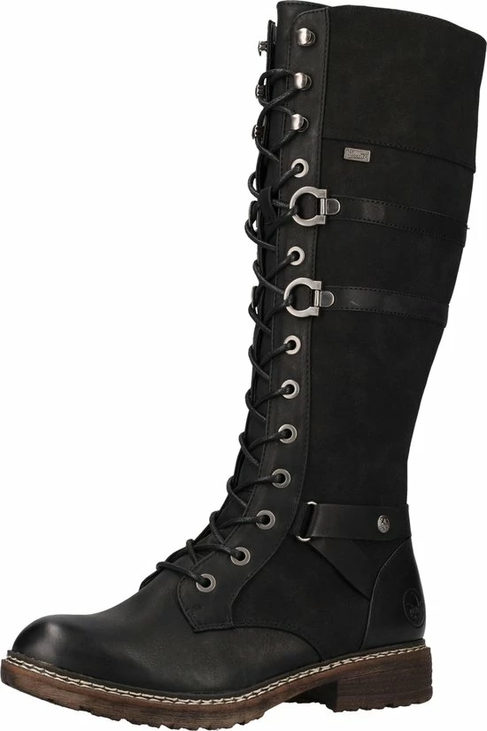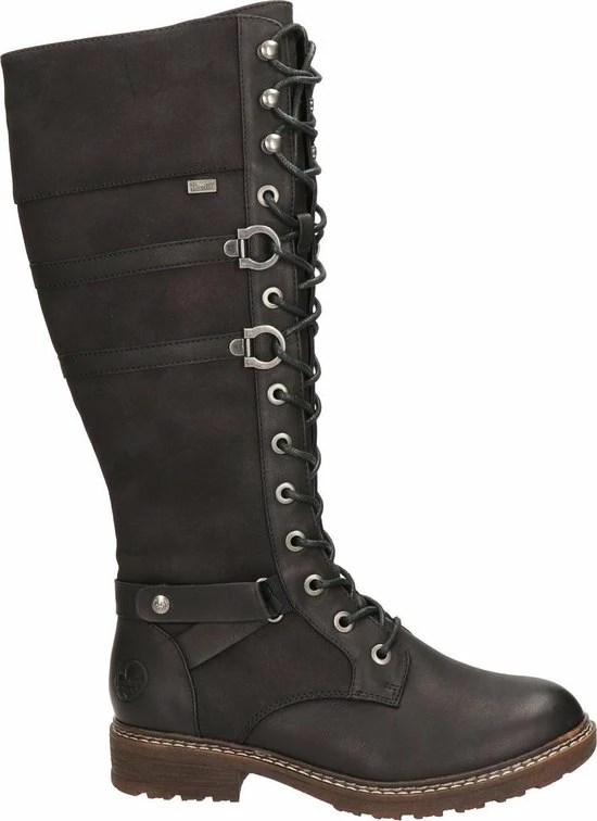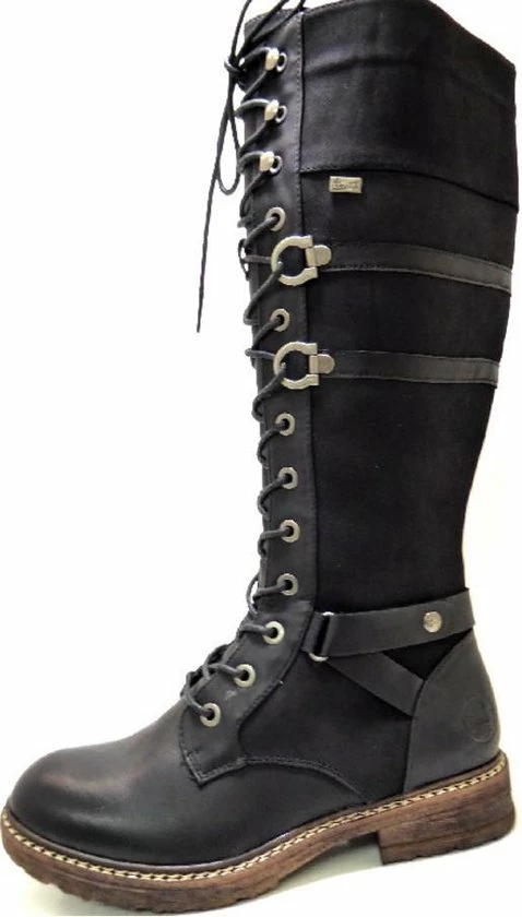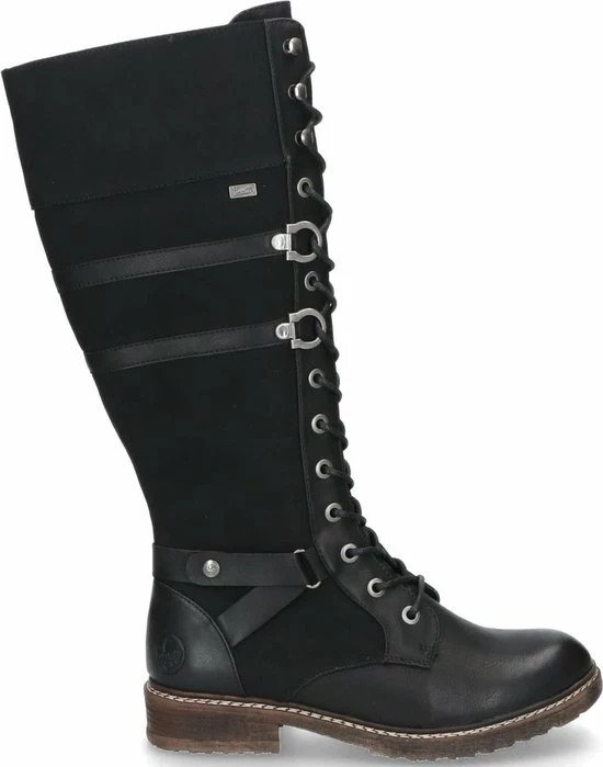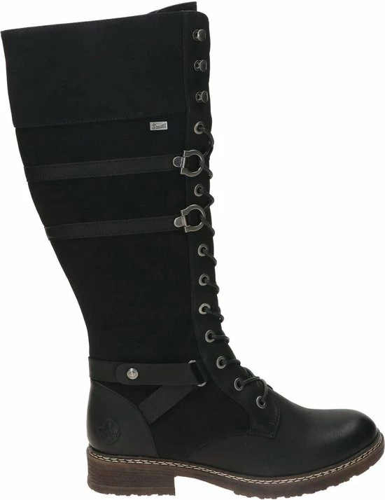 Deze lange dames laarzen komen uit de nieuwe collectie van Rieker. Het bovenwerk van deze zwarte lange dames laars is geheel van synthetisch materiaal. Aan de binnenzijde van de laars is een rits geplaatst om het in- en uitstappen te versoepelen. De binnenvoering van de laarzen is warm gevoerd, heerlijk voor de koude- en regenachtige winterdagen. Dit dames model van Rieker 94732 beschikt over een vaste binnenzool. De laarzen van Rieker zijn namelijk uitgerust met een speciaal anti-stress systeem. Dit systeem biedt de schoenen een minimum aan gewicht, een optimale schokdemping, een maximum aan flexibiliteit