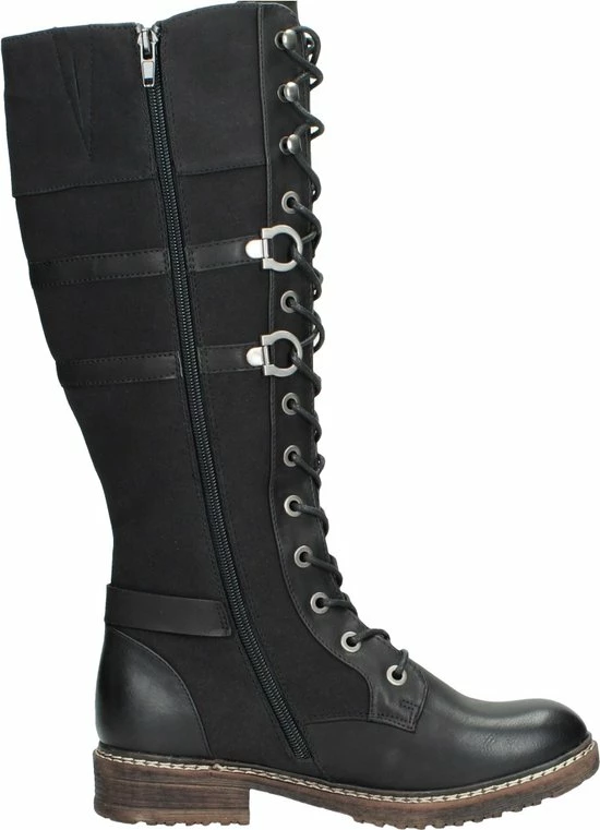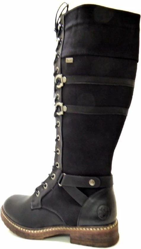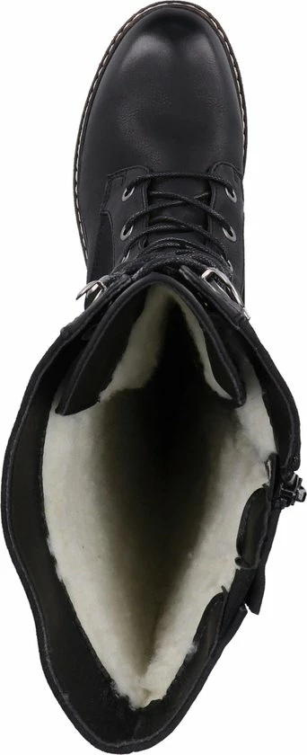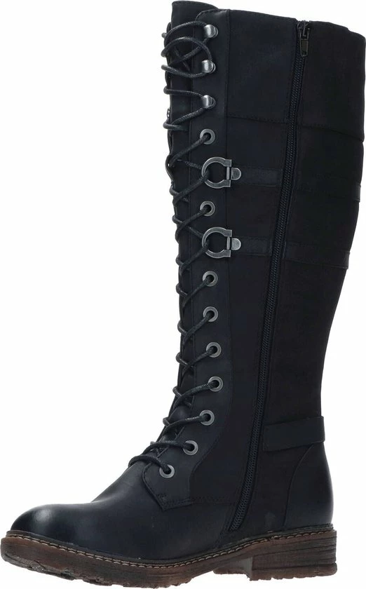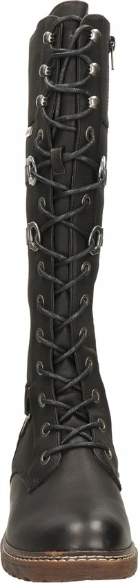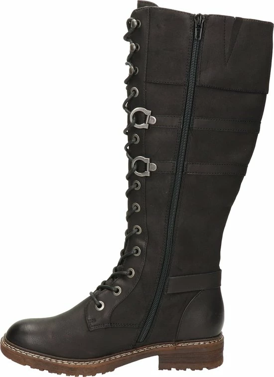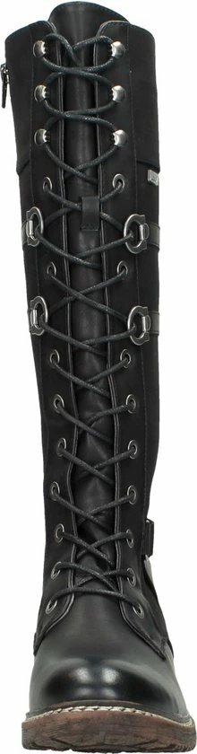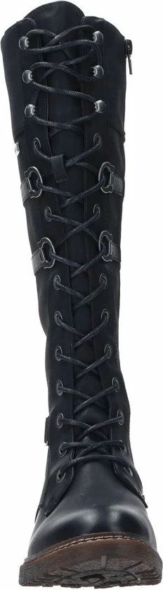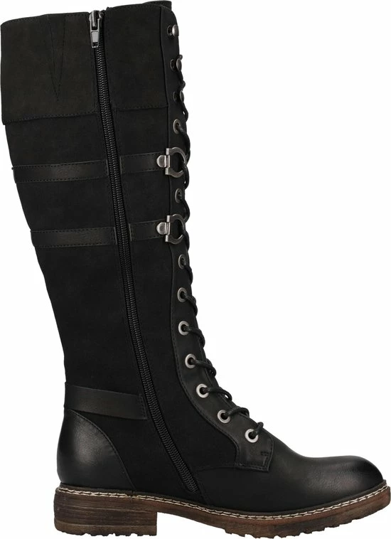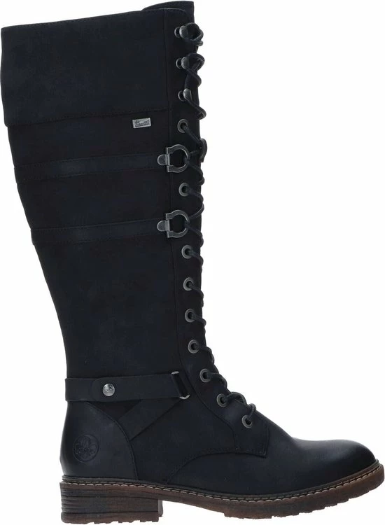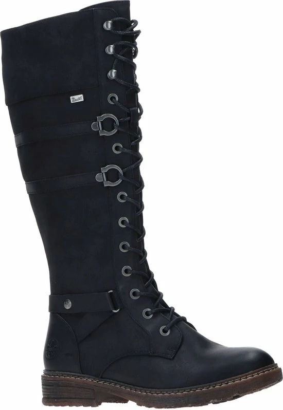 Deze lange dames laarzen komen uit de nieuwe collectie van Rieker. Het bovenwerk van deze zwarte lange dames laars is geheel van synthetisch materiaal. Aan de binnenzijde van de laars is een rits geplaatst om het in- en uitstappen te versoepelen. De binnenvoering van de laarzen is warm gevoerd, heerlijk voor de koude- en regenachtige winterdagen. Dit dames model van Rieker 94732 beschikt over een vaste binnenzool. De laarzen van Rieker zijn namelijk uitgerust met een speciaal anti-stress systeem. Dit systeem biedt de schoenen een minimum aan gewicht, een optimale schokdemping, een maximum aan flexibiliteit