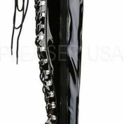 Adore-3063 Plateau Lak Overknee Laars Met Veters En Stiletto Hak Zwart – (EU 42,5 = US 12) – Pleaser