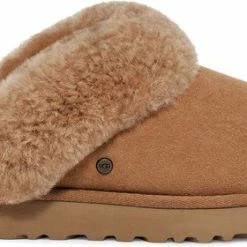 Vanuba LuLu- Leren Dames Pantoffels – Sloffen Gevoerd Met Schapenvacht. Maat 36 – Bruin Beige