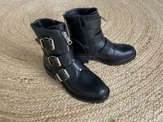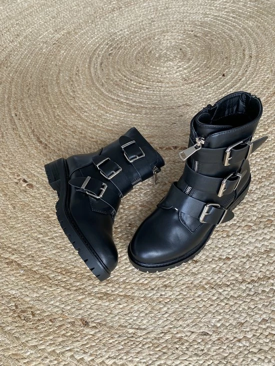 Een bikerboot zorgt voor die ultieme stoere finishing touch. De buitenkant is gemaakt van zwart kunststofleer en heeft een zilverkleurige rits over de wreef en drie leren bandjes afgewerkt met 3 gespen. Ook de binnenzijde van de boot is voorzien van een ritssluiting zodat je ‘m gemakkelijk aan- en uittrekt. De microrubberen zool is licht van gewicht wat zorgt voor een comfortabel gevoel en is voorzien van een grof profiel voor een goede grip en stabiliteit.