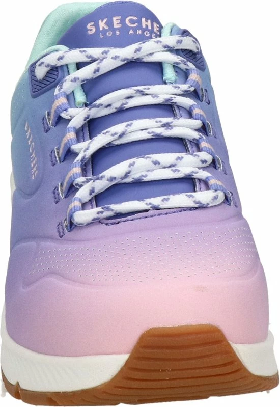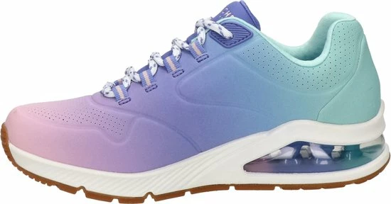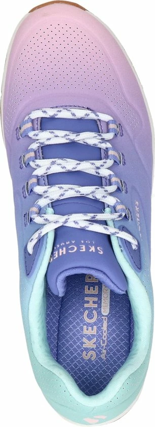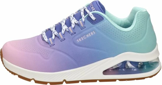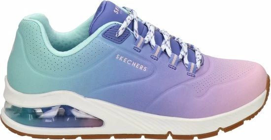 Skechers Street Uno 2 dames sneaker. Deze kleurrijke sneaker is van het merk Skechers. Uitgevoerd in imitatieleer. Voorzien van een zacht en dempend Air-Cooled memory foam voetbed. De zool is voorzien van luchtkussens voor een goede schokdemping tijdens het lopen. Afgewerkt met een gripvaste rubberen zool.