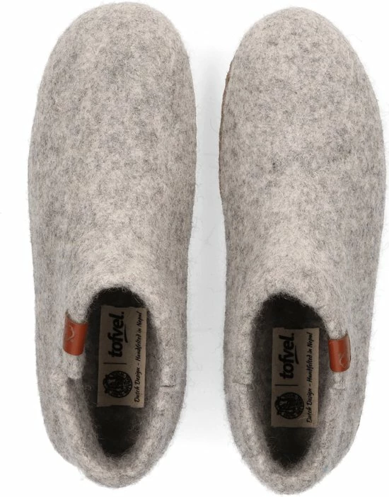 Tofvel Mula grijs pantoffels dames en heren Geniet thuis van heerlijk warme voeten met deze comfortabele Tofvel pantoffel. De Tofvel is voor zowel dames als heren en verkrijgbaar in maat 35 t/m 47. Ben je op zoek naar heerlijk warme wollen sloffen? Dan hoef je niet verder te zoeken. De pantoffels van Tofvel zitten heerlijk en houden de voeten aangenaam op temperatuur. Lekker warm in de winter en koel in de zomer. De duurzame sloffen worden met de hand vervaardigd in Nepal, zonder toepassing van chemicaliën. De schacht van de pantoffel bestaat uit één geheel, gemaakt van 100% wolvilt afkomstig van vrij grazende schapen. De zachte zool is alleen geschikt voor binnenshuis, maar biedt hier wel goede grip op de gladde vloeren. De sloffen zijn een genot om te dragen en dankzij de gebruikte materialen hebben ze een aantal fijne eigenschappen. Het wolvilt is ademend en houdt de voeten comfortabel op temperatuur. Kleur: grijs, licht grijsMateriaal bovenwerk: wol, vilt