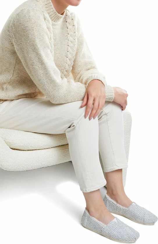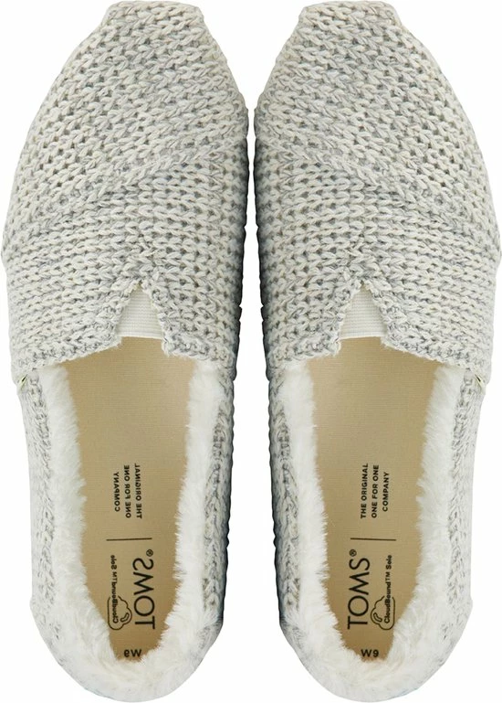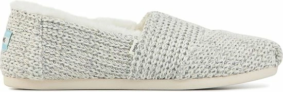 Damesschoen model Alpargate Cozy in de kleur wit van TOMS Pasvorm Dit model van TOMS valt normaal op maat Beschrijving Stoffen espadrille pantoffel voor dames van het merk TOMS. Deze pantoffel met ronde neus is uitgevoerd in gebreide stof. De binnenkant is geheel uitgevoerd in vacht. De rubberen zool heeft een medium profiel voor stevige grip.