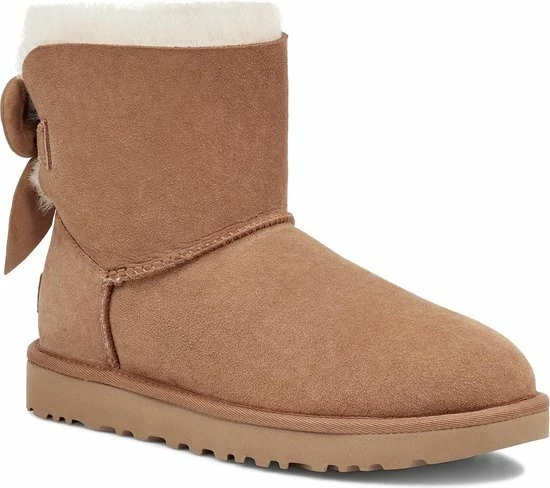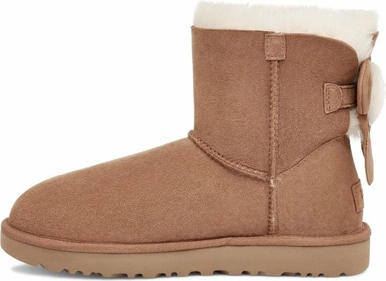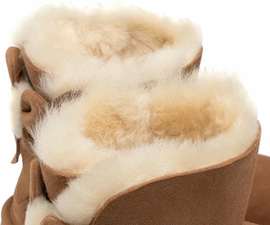 Deze vernieuwde Bailey is gestyled met een strik van zachte sheepskin en heeft dezelfde zachte feel en flexibele zool als het origineel. Ugg Mini Bailey Fluff Bow Laarzen Bruin – Dames Laarzen – 1123635-CHE Deze vernieuwde Bailey is gestyled met een strik van zachte sheepskin en heeft dezelfde zachte feel en flexibele zool als het origineel. Hij is gevoerd met onze heerlijk zachte UGGplush-wolmix en afgewerkt met een duurzame Treadlite by UGG-buitenzool voor extra demping en grip. * Bovenstuk van 17 mm dikke dubbelzijdige sheepskin * Vaste strik, pompon van sheepskin, suède hielkap * Voering van 17 mm dik sheepskin * Inlegzool van 17 mm UGGplushâ„¢; 80% geüpcyclede wol, 20% lyocell * Buitenzool van Treadlite by UGGâ„¢ voor comfort * Stoffen binding gemaakt van 100% gerecyclede polyestervezels * Schachthoogte 14 cm * Suède hiellabel met UGG®-logo in reliëf