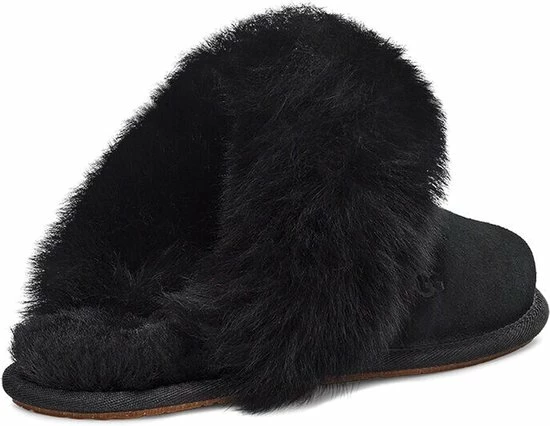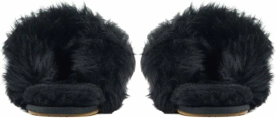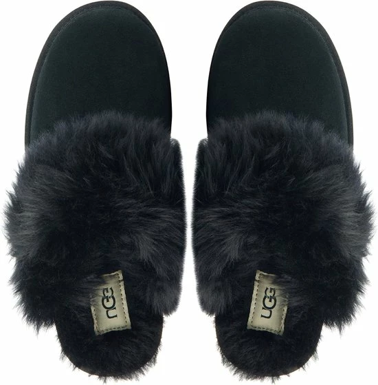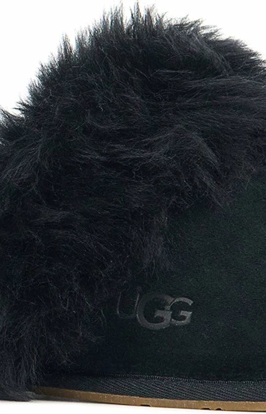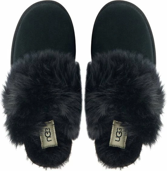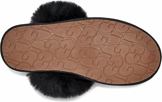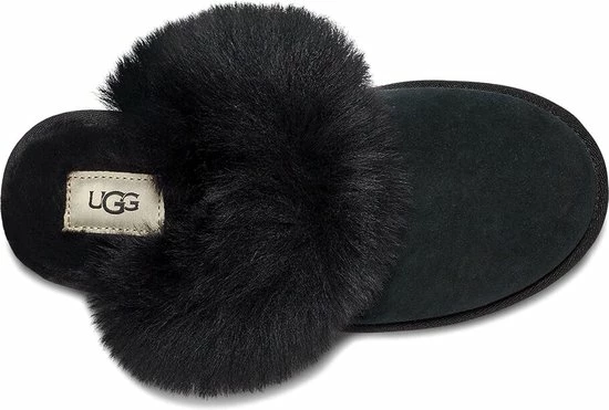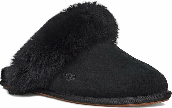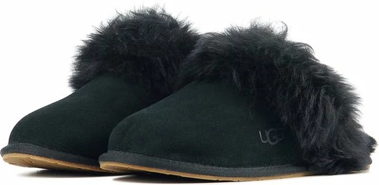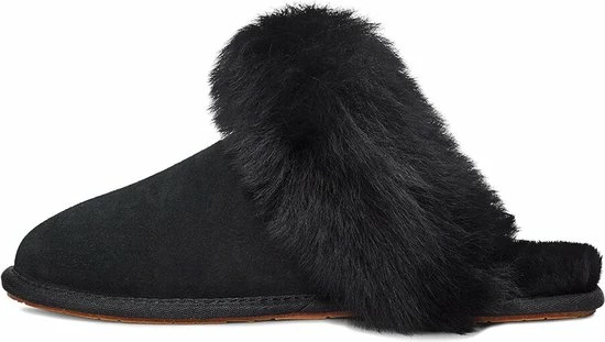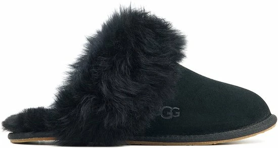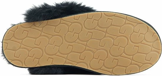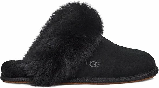 Dames pantoffel model 1122750 in de kleur zwart van UGG. PasvormDit model valt normaal op maat. BeschrijvingPantoffel met vacht voor dames van het merk UGG Australia. Deze zwarte instapper is uitgevoerd in suède. De binnenzijde is geheel uitgevoerd in vacht welke ook doorloopt op de omslag van deze pantoffel. De rubberen loopzool heeft een medium profiel voor stevige grip.
