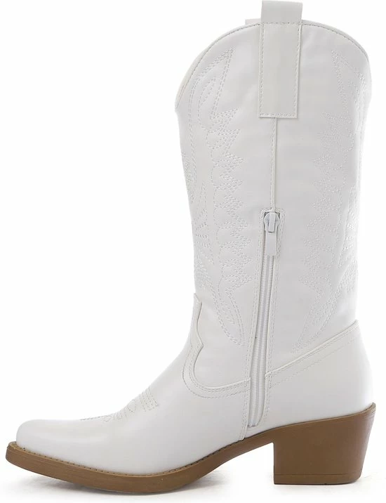 WELOVESHOES® Dames Cowboylaarzen Met Hak – Imitatieleer – Wit – Maat 40